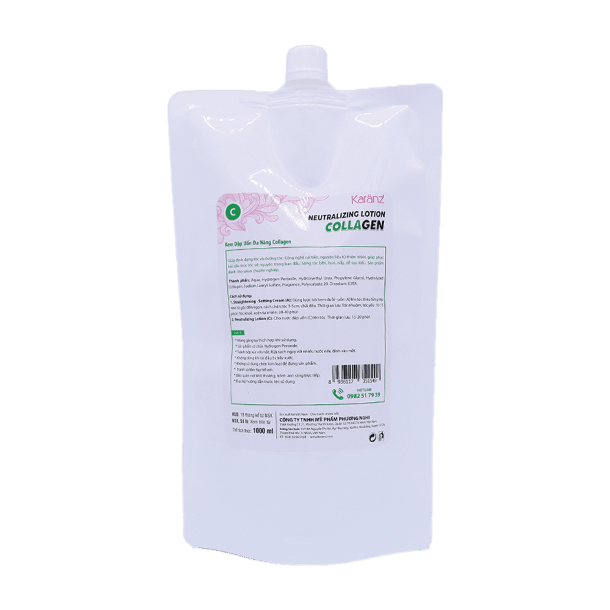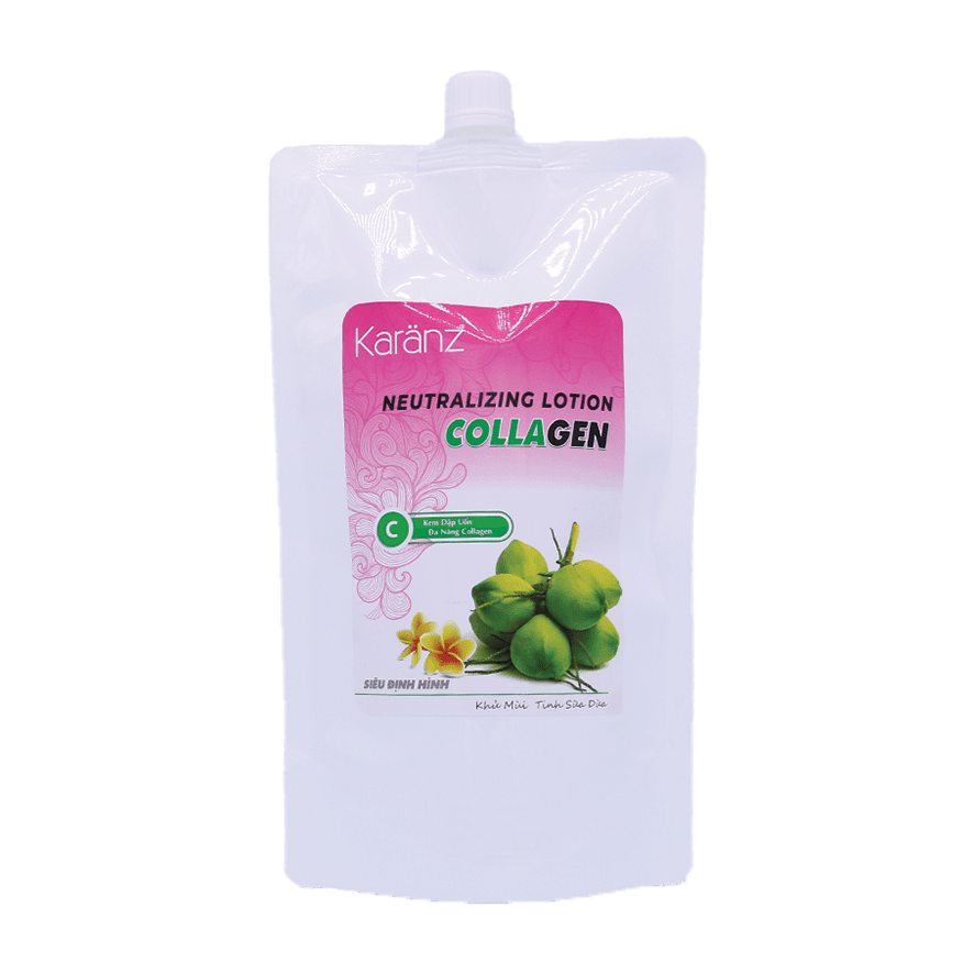 2. Neutralizing Lotion Collagen (C): Dùng lược bôi nước dập uốn lên tóc, chải đều. Thời gian lưu: 15-20 phút.